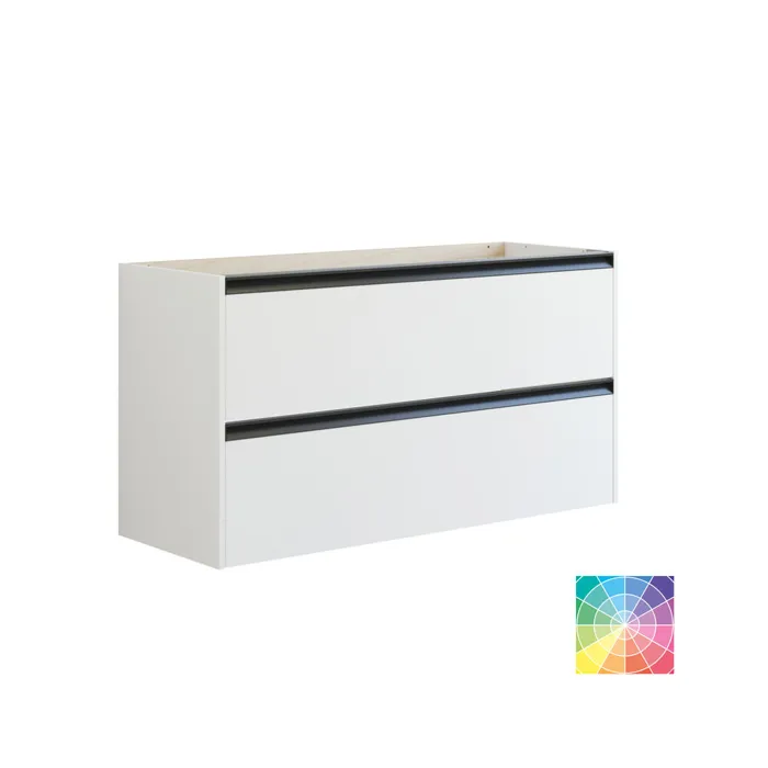 Geef je badkamer een moderne touch met het wastafelonderkast met geïntegreerde greep. Dit kastje heeft twee diepe lades van 32 cm hoog en biedt voldoende opbergruimte voor je dagelijkse benodigdheden. De greep is standaard zwart, wat zorgt voor een strakke look, en als je het wastafelonderkast in een andere kleur kiest, wordt de greep harmonieus aangepast aan de kleur van het kastje. Dit minimalistische ontwerp creëert een elegante sfeer en helpt je badkamer netjes te houden. Let op: er geldt een opstarttarief (BI1) voor producten met wenskleur. Deze wordt eenmalig betaald per wenskleur, ongeacht het aantal producten. Vergeet niet de kleine praktische dingen aan je badkamermeubels toe te voegen waar je dagelijks plezier van hebt. Bijvoorbeeld verlichting in lades en kastjes, ingebouwde stopcontacten en gedimde sensorlampjes onder de meubels om nachtelijke bezoeken aan de badkamer te begeleiden. Opties worden tegelijk met je meubels bested.