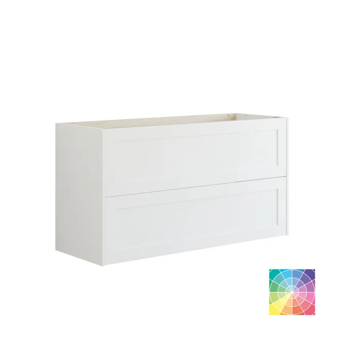 Verfris je badkamer met het wastafelonderkast met raamwerk front. Dit kastje heeft twee ruime lades van elk 32 cm hoog, wat voldoende opbergruimte biedt voor je badkamerbenodigdheden. Het raamwerk front voegt een moderne en stijlvolle dimensie toe aan je badkamer, wat het een esthetische aanwinst maakt. Het tijdloze ontwerp zorgt ervoor dat het kastje in elk interieur past en bijdraagt aan een georganiseerde en elegante sfeer. Let op: er geldt een opstarttarief (BI1) voor producten met wenskleur. Deze wordt eenmalig betaald per wenskleur, ongeacht het aantal producten. Vergeet niet de kleine praktische dingen aan je badkamermeubels toe te voegen waar je dagelijks plezier van hebt. Bijvoorbeeld verlichting in lades en kastjes, ingebouwde stopcontacten en gedimde sensorlampjes onder de meubels om nachtelijke bezoeken aan de badkamer te begeleiden. Opties worden tegelijk met je meubels bested.