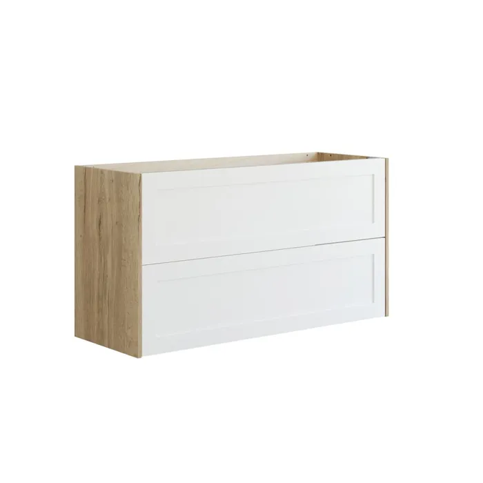 Verfris je badkamer met het wastafelonderkast met raamwerk front. Dit kastje heeft twee ruime lades van elk 32 cm hoog, wat voldoende opbergruimte biedt voor je badkamerbenodigdheden. Het raamwerk front voegt een moderne en stijlvolle dimensie toe aan je badkamer, wat het een esthetische aanwinst maakt. Het tijdloze ontwerp zorgt ervoor dat het kastje in elk interieur past en bijdraagt aan een georganiseerde en elegante sfeer. Let op: er geldt een opstarttarief (BI1) voor producten met wenskleur. Deze wordt eenmalig betaald per wenskleur, ongeacht het aantal producten. Vergeet niet de kleine praktische dingen aan je badkamermeubels toe te voegen waar je dagelijks plezier van hebt. Bijvoorbeeld verlichting in lades en kastjes, ingebouwde stopcontacten en gedimde sensorlampjes onder de meubels om nachtelijke bezoeken aan de badkamer te begeleiden. Opties worden tegelijk met je meubels bested.
