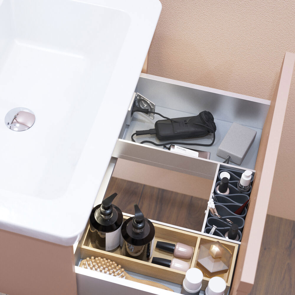 Verander uw badkamer met het wastafelonderkast met 2 lades. Dit stijlvolle kast heeft een hoogte van 48 cm en een diepte van 44 cm, perfect voor het organiseren van uw badkamerartikelen. De waterfall front geeft het kast een unieke en moderne uitstraling, die karakter aan uw ruimte toevoegt. Kies uit verschillende kleuren om de perfecte match voor uw stijl te vinden. Het kast biedt praktische opbergruimte, zodat u uw spullen eenvoudig kunt organiseren. Het wastafelonderkast met 2 lades biedt zowel functionaliteit als schoonheid, wat het een uitstekende aanvulling op uw badkamer maakt. Maak uw ruimte georganiseerder en stijlvoller met jouw fantastische wastafelonderkast. Let op: er geldt een opstarttarief (BI1) voor producten met wenskleur. Deze wordt eenmalig betaald per wenskleur, ongeacht het aantal producten. Vergeet niet de kleine praktische dingen aan je badkamermeubels toe te voegen waar je dagelijks plezier van hebt. Bijvoorbeeld verlichting in lades en kastjes, ingebouwde stopcontacten en gedimde sensorlampjes onder de meubels om nachtelijke bezoeken aan de badkamer te begeleiden. Opties worden tegelijk met je meubels bested.