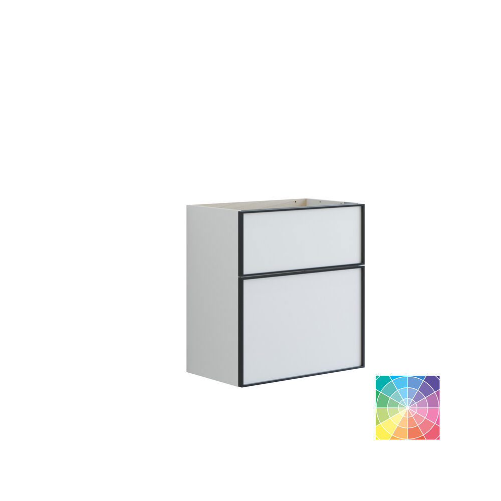 Het wastafelonderkast met lades biedt een slimme en stijlvolle oplossing voor jouw badkamer. De compacte diepte van 35 cm maakt het perfect voor kleinere badkamers, terwijl de hoge onderste lade ruimte biedt voor grotere items. Het elegante ontwerp met een zwarte aluminiumrand voegt een moderne touch toe, en je hebt ook de mogelijkheid om je badkamerartikelen praktisch en stijlvol te organiseren. Let op: er geldt een opstarttarief (BI1) voor producten met wenskleur. Deze wordt eenmalig betaald per wenskleur, ongeacht het aantal producten. Vergeet niet de kleine praktische dingen aan je badkamermeubels toe te voegen waar je dagelijks plezier van hebt. Bijvoorbeeld verlichting in lades en kastjes, ingebouwde stopcontacten en gedimde sensorlampjes onder de meubels om nachtelijke bezoeken aan de badkamer te begeleiden. Opties worden tegelijk met je meubels bested.