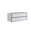 Upgrade uw badkamer met het wastafelonderkast met 2 lades. Dit stijlvolle kast is 48 cm hoog en 44 cm diep, ideaal voor het organiseren van uw badkamerartikelen. Het elegante zwarte frame rondom de lades voegt een moderne en strakke uitstraling toe die bij elke inrichting past. Kies uit verschillende kleuren om de kleur te vinden die het beste bij uw stijl past. Het kast biedt slimme opbergruimte, zodat u alles eenvoudig op orde kunt houden. Het wastafelonderkast met 2 lades combineert functionaliteit met esthetiek en is een mooie aanvulling op uw badkamer. Maak uw ruimte georganiseerder en uitnodigender met dit fantastische wastafelonderkast. Let op: er geldt een opstarttarief (BI1) voor producten met wenskleur. Deze wordt eenmalig betaald per wenskleur, ongeacht het aantal producten. Vergeet niet de kleine praktische dingen aan je badkamermeubels toe te voegen waar je dagelijks plezier van hebt. Bijvoorbeeld verlichting in lades en kastjes, ingebouwde stopcontacten en gedimde sensorlampjes onder de meubels om nachtelijke bezoeken aan de badkamer te begeleiden. Opties worden tegelijk met je meubels bested.