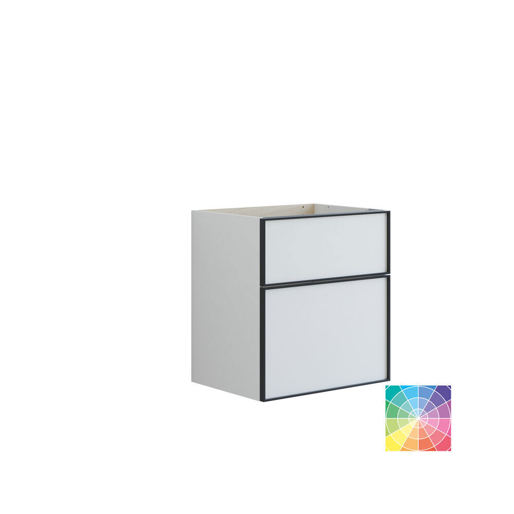 Upgrade je badkamer met een wastafelonderkast met 2 lades. Deze stijlvolle kast is 64 cm hoog en heeft een diepte van 44 cm, perfect voor het organiseren van je badkamerartikelen. Het elegante zwarte frame rond de lades voegt een moderne en stijlvolle uitstraling toe die past bij elke inrichting. Kies uit verschillende kleuren om de beste match voor jouw stijl te vinden. De kast biedt slimme opbergruimte, zodat je alles gemakkelijk op orde kunt houden. De wastafelonderkast met 2 lades combineert praktische functionaliteit met een prachtig design, wat het een perfecte toevoeging maakt aan je badkamer. Maak je ruimte georganiseerder en uitnodigender met deze fantastische wastafelonderkast. Let op: er geldt een opstarttarief (BI1) voor producten met wenskleur. Deze wordt eenmalig betaald per wenskleur, ongeacht het aantal producten. Vergeet niet de kleine praktische dingen aan je badkamermeubels toe te voegen waar je dagelijks plezier van hebt. Bijvoorbeeld verlichting in lades en kastjes, ingebouwde stopcontacten en gedimde sensorlampjes onder de meubels om nachtelijke bezoeken aan de badkamer te begeleiden. Opties worden tegelijk met je meubels bested.