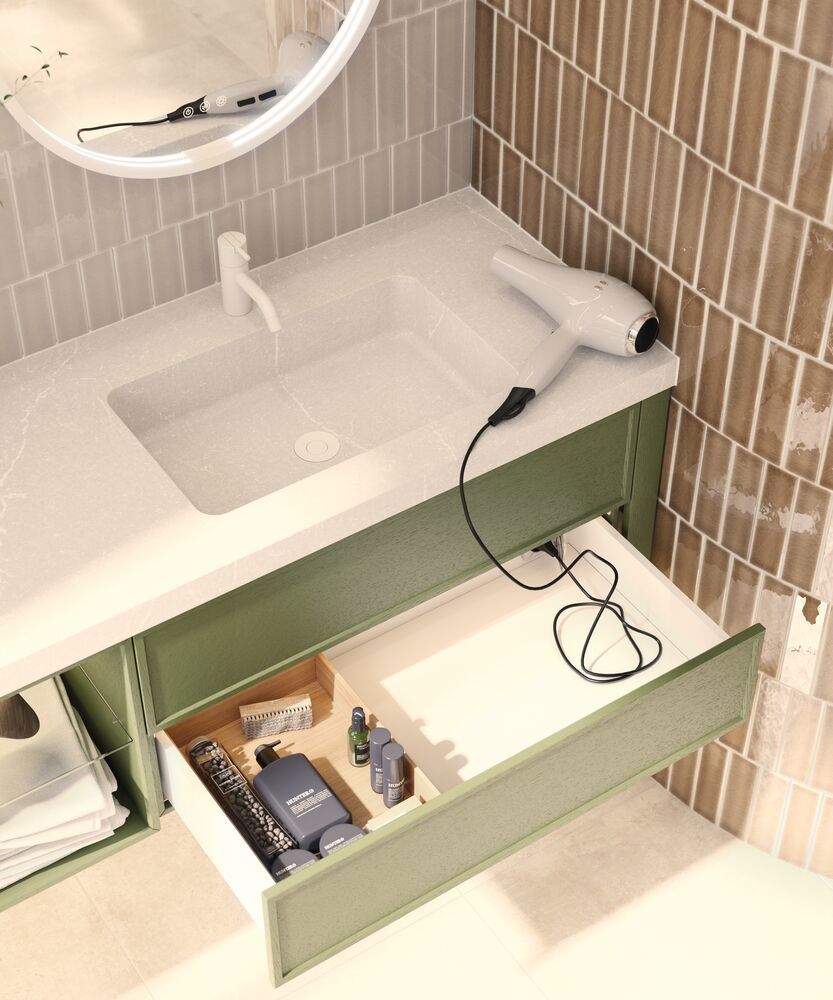 Het Dansani Calidris badmeubel met 2 lades is een prachtige samensmelting van stijl en functionaliteit voor je badkamer. Het minimalistische ontwerp en de strakke lijnen van het Calidris badmeubel voegen een verfijnd design toe aan je badkamer. De twee ruime lades bieden niet alleen praktische opbergruimte, maar zorgen er ook voor dat je badkamer netjes en georganiseerd blijft. Met de focus op functionaliteit en design is het Dansani Calidris badmeubel met 2 lades de ideale keuze voor wie een elegante en goed georganiseerde oplossing voor de badkamer zoekt. Let op: er geldt een opstarttarief (BI1) per eiken en wenskleur. Deze wordt eenmalig betaald per eiken en wenskleur, ongeacht het aantal producten. Vergeet niet de kleine praktische dingen aan je badkamermeubels toe te voegen waar je dagelijks plezier van hebt. Bijvoorbeeld verlichting in lades en kastjes, ingebouwde stopcontacten en gedimde sensorlampjes onder de meubels om nachtelijke bezoeken aan de badkamer te begeleiden. Opties worden tegelijk met je meubels bested.