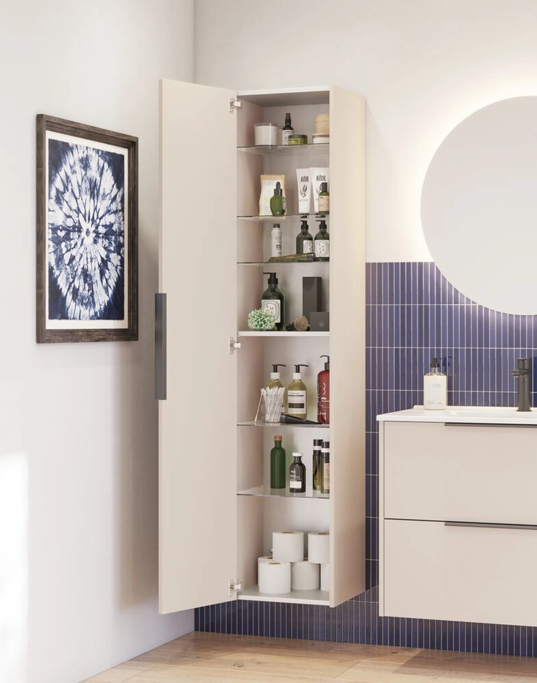 Dubbele opbergruimte met dit badmeubel met 2 ruime lades. De wastafelonderkast is verkrijgbaar in wit, zandkleurig of lichtblauw en past perfect in elke Scandinavisch geïnspireerde badkamer. De twee lades bieden voldoende ruimte voor zowel kleine als grote toiletartikelen, en de handgrepen zijn aangebracht zodat het meubel meteen klaar is voor gebruik.