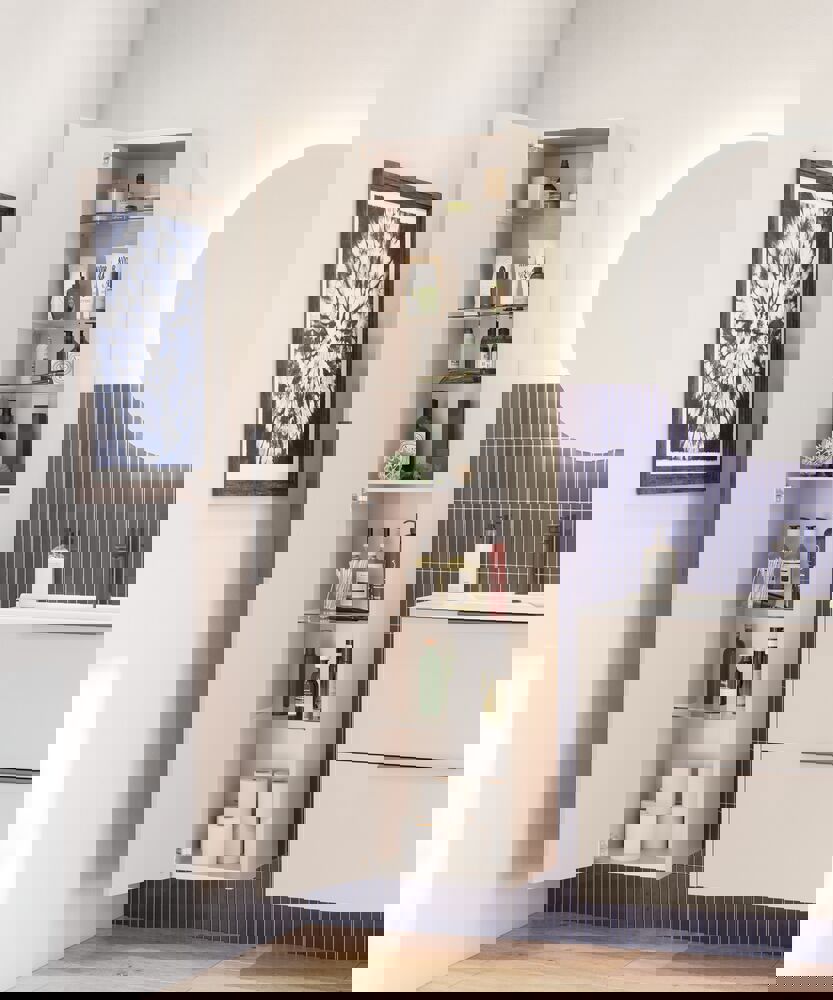 Dubbele opbergruimte met dit badmeubel met 2 ruime lades. De wastafelonderkast is verkrijgbaar in wit, zandkleurig of lichtblauw en past perfect in elke Scandinavisch geïnspireerde badkamer. De twee lades bieden voldoende ruimte voor zowel kleine als grote toiletartikelen, en de handgrepen zijn aangebracht zodat het meubel meteen klaar is voor gebruik.