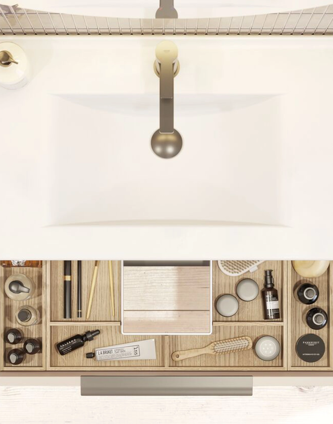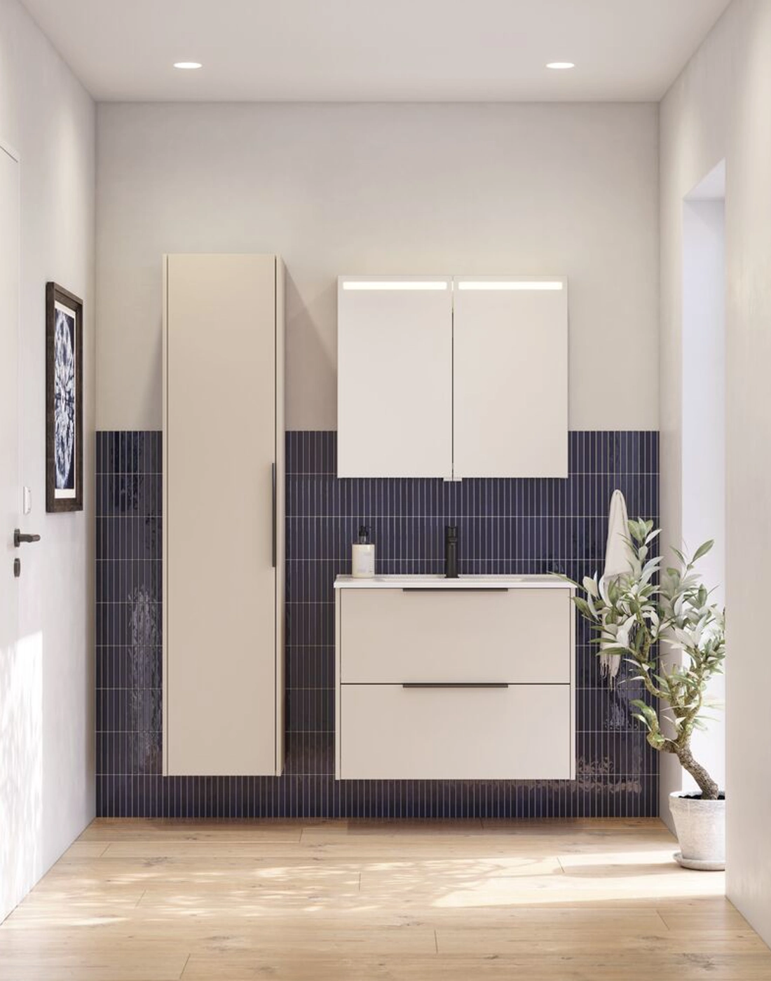 Dubbele opbergruimte met dit badmeubel met 2 ruime lades. De wastafelonderkast is verkrijgbaar in wit, zandkleurig of lichtblauw en past perfect in elke Scandinavisch geïnspireerde badkamer. De twee lades bieden voldoende ruimte voor zowel kleine als grote toiletartikelen, en de handgrepen zijn aangebracht zodat het meubel meteen klaar is voor gebruik.