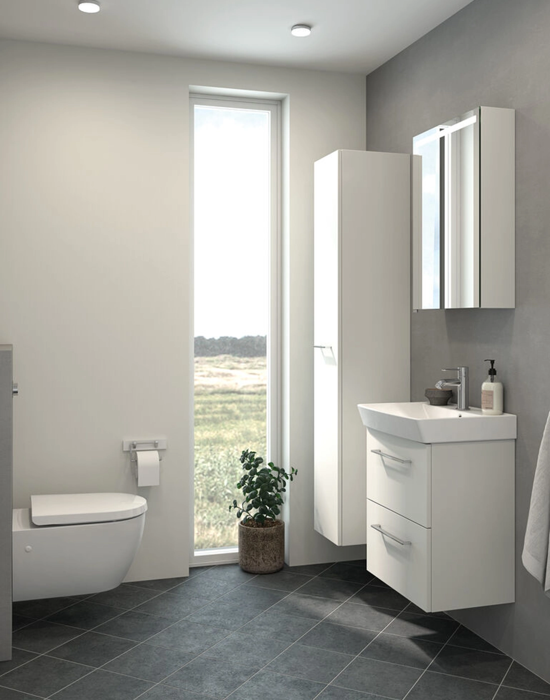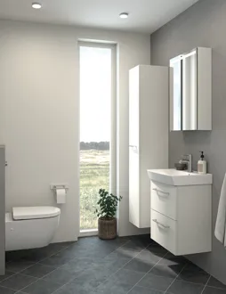 Verbeter je badkamer met een budgetvriendelijke keuze: het Dansani Mido+ 2-lades wastafelmeubel. Met een diepte van 35 cm is dit badmeubel perfect voor kleinere badkamers, gastentoiletten of vakantiehuizen. Het Dansani Mido+ badmeubel is vriendelijk geprijsd en je kunt er opties als ladeverlichting en houten ladeverdelers aan toevoegen voor meer overzicht en organisatie in de badkamer. Alle Mido+ meubels worden geleverd met de klassieke handgreep Base in chroom. Je kunt een andere greep kiezen voor een andere look, maar vergeet niet dat deze samen met je meubels moet worden besteld. Vergeet niet de kleine praktische dingen aan je badkamermeubels toe te voegen waar je dagelijks plezier van hebt. Bijvoorbeeld verlichting en ladeverdelers voor je lades.