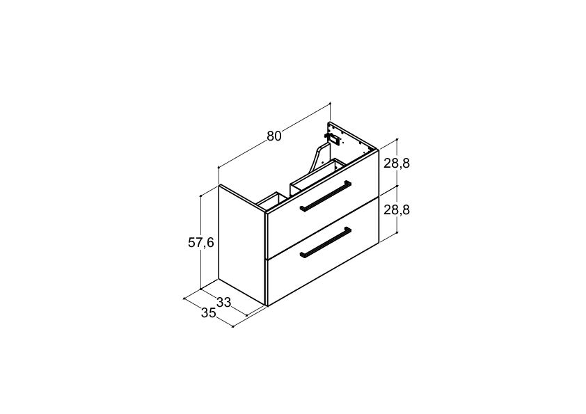 Wastafelonderkast met 2 laden