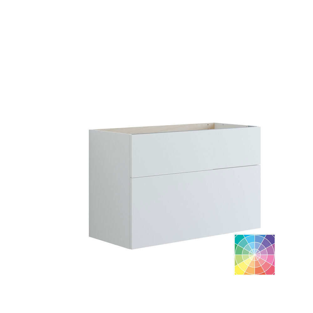 Het badmeubel met twee laden is 64 cm hoog en heeft een extra hoge onderste lade voor meer opbergruimte. Kies uit verschillende kleuren die passen bij jouw persoonlijke stijl. Met dit badmeubel kun je eenvoudig je badkamerspullen organiseren en overzicht houden. Met het badmeubel met 2 lades voeg je zowel functionaliteit als design toe aan je badkamer. Maak je ruimte georganiseerder en eleganter met dit hoogwaardige badmeubel. Let op: er geldt een opstarttarief (BI1) voor producten met wenskleur. Deze wordt eenmalig betaald per wenskleur, ongeacht het aantal producten. Vergeet niet de kleine praktische dingen aan je badkamermeubels toe te voegen waar je dagelijks plezier van hebt. Bijvoorbeeld verlichting in lades en kastjes, ingebouwde stopcontacten en gedimde sensorlampjes onder de meubels om nachtelijke bezoeken aan de badkamer te begeleiden. Opties worden tegelijk met je meubels bested.