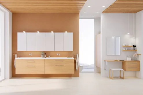 De houten werkbladen voor de Dansani Calidris serie voegen een vleugje natuurlijke elegantie toe aan je badkamer. Deze op maat gemaakte werkbladen zijn gemaakt van eersteklas houtsoorten en op maat gemaakt om bij de Calidris meubelen te passen, waardoor een harmonieuze verbinding tussen functionaliteit en design ontstaat. De authentieke houtstructuur geeft de ruimte een warme uitstraling en voegt een gevoel van luxe en kwaliteit toe. Let op: er geldt een opstarttarief (BI1) per eiken en wenskleur. Deze wordt eenmalig betaald per eiken en wenskleur, ongeacht het aantal producten.
