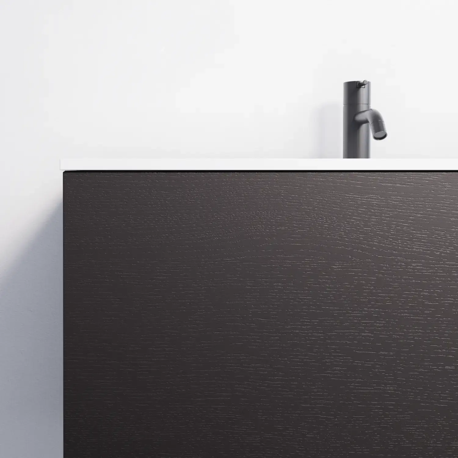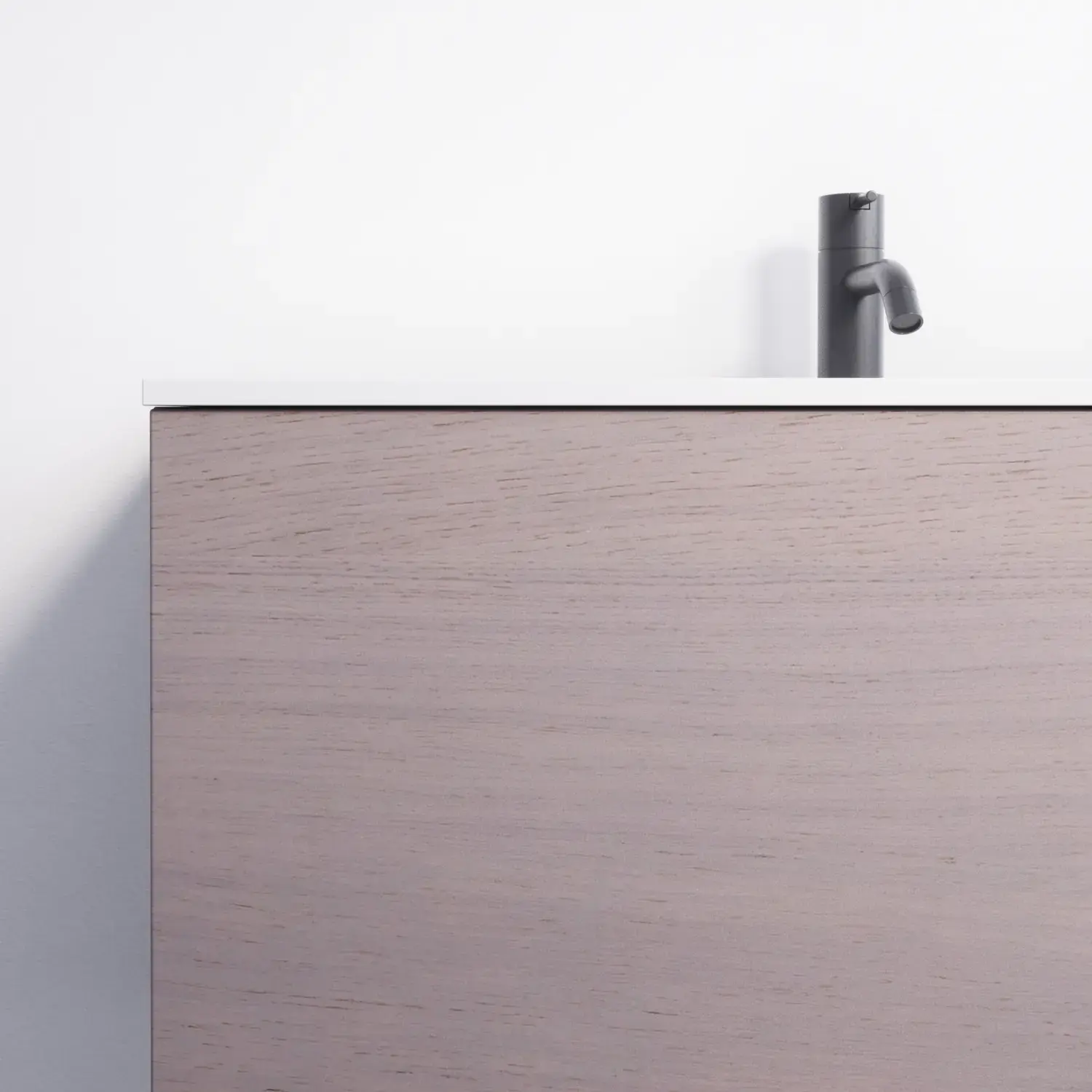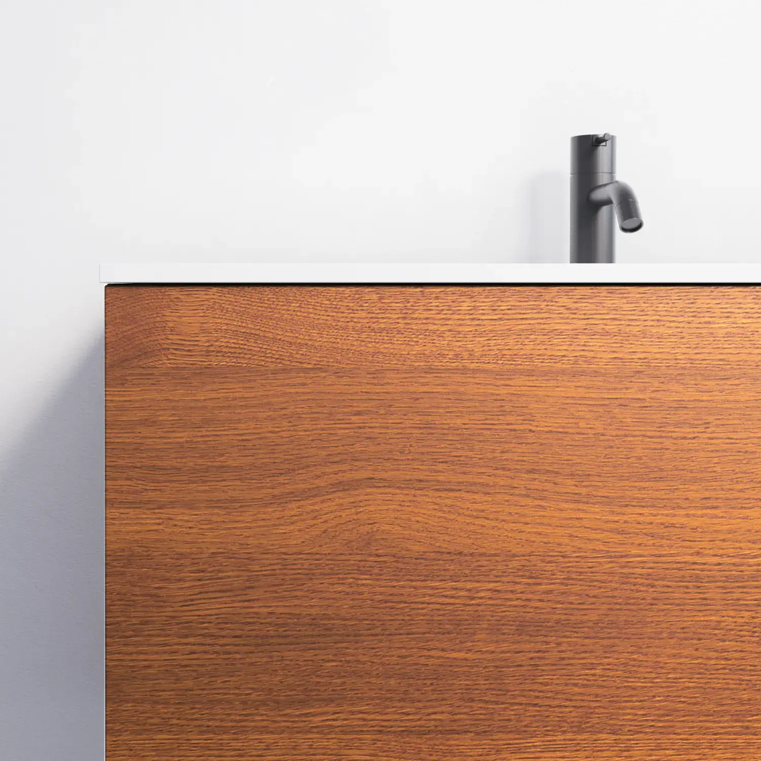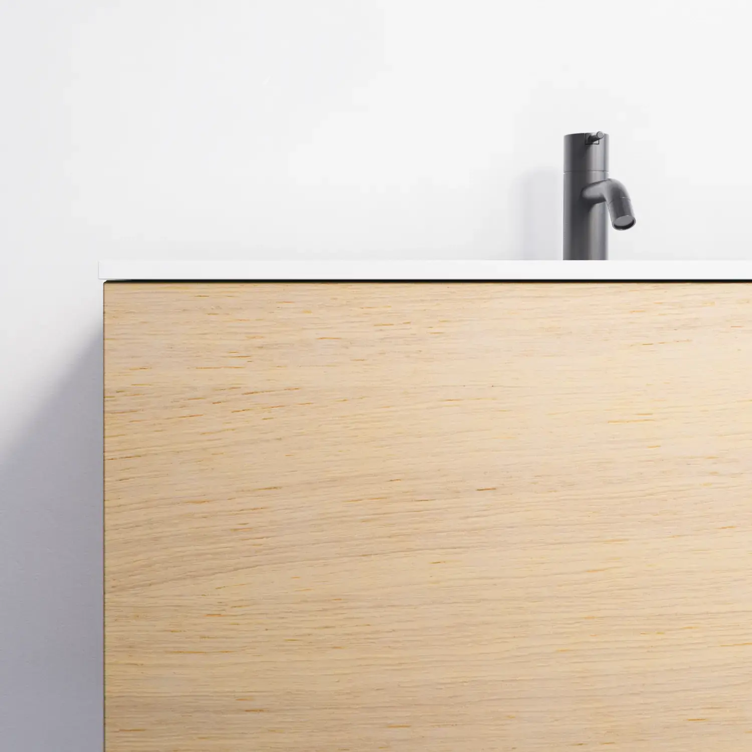 Het is uiteraard ook mogelijk om een mooi monochroom geheel te creëren door te kiezen voor een houten werkblad met dezelfde afwerking als het meubel – dat wil zeggen een van de 7 gefineerde afwerkingen.