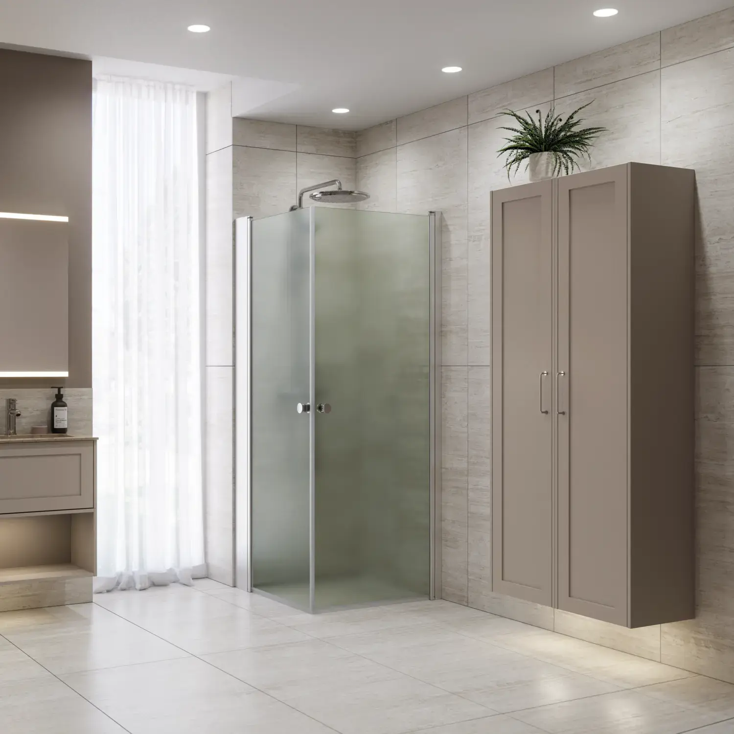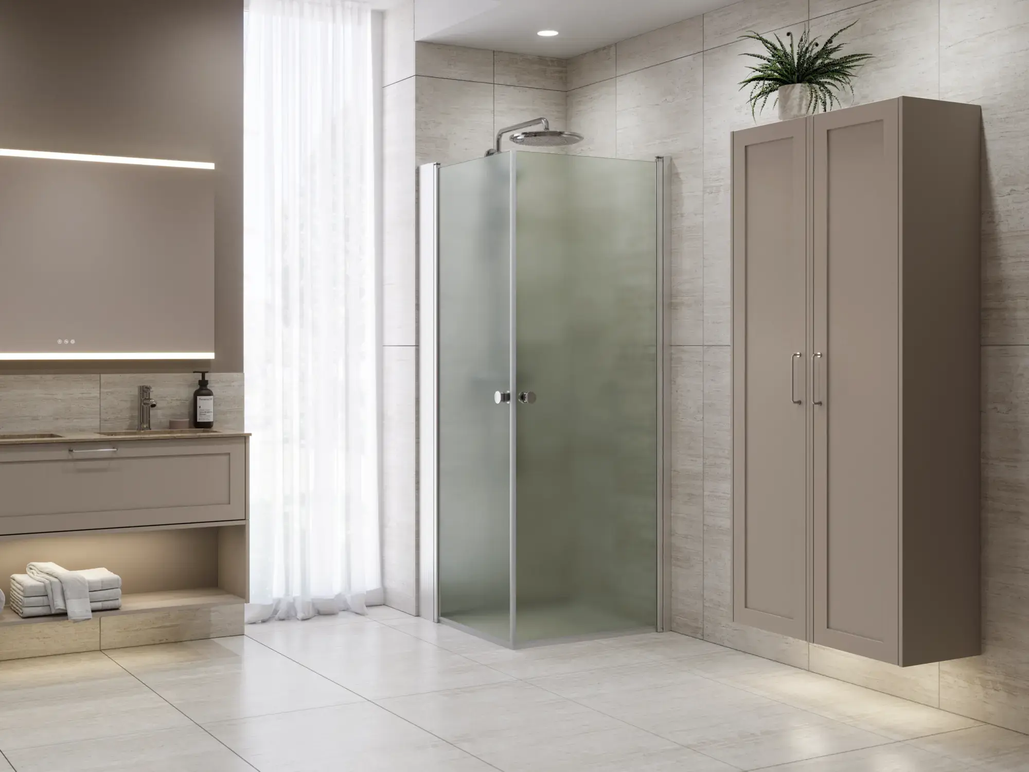 Dansani Match klassieke douchehoeken met twee douchedeuren die zowel naar binnen als naar buiten kunnen openen, wanneer u de twee douchedeuren niet gebruikt. Dit schept ruimte in de kleinere badkamer en vergroot het vloeroppervlak.